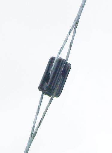 | Keywords: Johnny ball strain insulator.JPG strain insulator sometimes called a Johnny ball These are used in guy cables supporting utility poles to prevent any high voltage on the cable due to leakage currents or an electrical fault on the pole from reaching the lower part of the cable which is accessible by the public They are also used in guys supporting radio antenna masts This design has two mechanical advantages The ceramic is under compression rather than tension which takes advantage of ceramic's greater compressional strength; and if the ceramic breaks the two wire loops are still linked and will not part 2012-08-08 08 02 46 own Chetvorno cc-zero Uploaded with UploadWizard Electric insulators |
