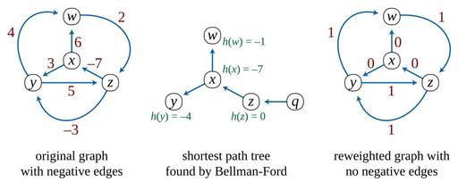 | Keywords: Johnson's algorithm.svg Johnson's algorithm for transforming a shortest path problem in a graph with negative edge weights into an equivalent problem with non-negative weights Own 2008-04-04 David Eppstein en wikipedia David Eppstein Shortest paths algorithms Files by User David Eppstein from en wikipedia Graphs graph theory |
