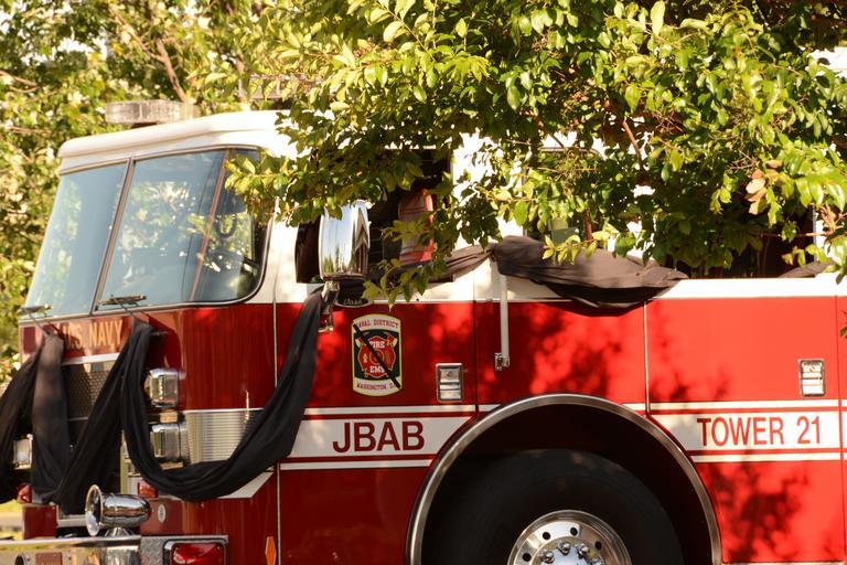| Keywords: Joint Base Anacostia-Bolling-based Naval District Washington Fire and Emergency Services Tower Ladder 21 140605-N-CG900-005.jpg en Joint Base Anacostia-Bolling JBAB -based Naval District Washington NDW Fire and Emergency Services Tower Ladder 21 sits with black bunting in honor of Fire Department Battalion Chief John Johnny Mac McDonald during his memorial service McDonald 54 a life member volunteer firefighter and former fire chief of the Stafford Virginia Volunteer Fire Department a volunteer battalion chief with the Stafford County Fire and Rescue Department and a paid firefighter and battalion chief with the JBAB-based NDW Fire and Emergency Services passed while on duty at JBAB on May 30 2014 Before becoming a paid firefighter with NDW in July 1984 McDonald served four years in the U S Navy as a boatswain ™s mate most of which was aboard the destroyer USS Caron DD-970 during which time he earned a sea service deployment award He was very proud of his naval service according to his co-workers U S Navy photo by Joseph P Cirone/Released 2014-06-05 Joseph P Cirone https //www dvidshub net/image/1392835 140605-N-CG900-005 2014-06-11 20 48 STAFFORD VA US PD-USGov-Military-Navy Joint Base Anacostia-Bolling Images from DoD uploaded by Fæ |