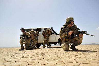 | Keywords: Joint Mass Casualty Exercise DVIDS176477.jpg en A U S Air Force Guardian Angel team from 82nd Expeditionary Rescue Squadron provides security during a joint mass casualty exercise near Camp Lemonier The tactical recovery team worked alongside Marines from 13th Marine Expeditionary Unit to recover simulated IPs in an austere environment 2009-05-20 Petty Officer 2nd Class Jesse Awalt https //www dvidshub net/image/176477 090520-N-+++++-238 2009-06-01 06 04 GRAND BARA DJ PD-USGov-Military-Navy 13th Marine Expeditionary Unit Camp Lemonnier Images from DoD uploaded by Fæ |