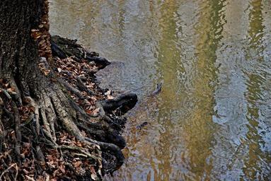 Keywords: joist staříč borovany river at the mill south bohemia river basin water trees bank nature roots reflection stropnický
