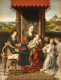 | Keywords: Joos van Cleve - Virgin and Child with Angels - Google Art Project.jpg Painting acquired in 1981 from the Weld family descendants of Henry Blundell 1724-1810 and his son Charles Blundell 1761-1837 of Ince Blundell Hall north of Liverpool tag_/_style Joos van Cleve; triptych; religious; lustrous; textures; glass; fur; polished marble; translucent gauze; accuracy; realism; symbolic; grapes; wine; table; blood of Christ; mass; apple; child; Adam and Eve; sin; redeem; Madonna; Christ; baby; rug; throne; canopy; singing; angels; music; cherries; landscape; Renaissance special url_id mgGcWO7R1WkCew PD-old-100-1923 1541 Joos van Cleve Google Art Project works by Joos van Cleve Paintings by Joos van Cleve with fur Fur linings in art Madonna with apple |