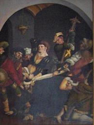 | Keywords: JörgBreu05.jpg The Mocking of Christ; panel of the Melk Altar 1502 by Jörg Breu; museum of the Melk Abbey Austria own 2006-06-23 Photo Georges Jansoone Artwork Creator Jörg Breu d Ä own photo PD-old-100 Jörg Breu d Ä First mocking of Christ at Caiaphas |