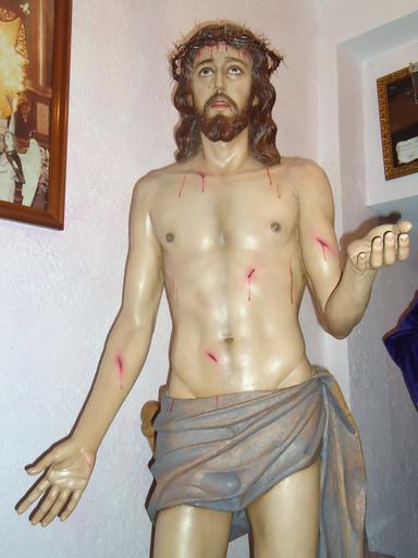 Keywords: José Antonio Hernández Navarro, Imagen del Santísimo Cristo del Perdón (2006).jpg A statue of the Santísimo Cristo del Perdón Holy Christ of Forgiveness which is owned by the Hermandad del Santísimo Cristo del Perdón y María Santísima The Brotherhood of the Holy Christ of Forgiveness and the Most Blessed Virgin Mary of Humility in w Aspe Alicante province Alicante Spain The Brotherhood organizes an annual Easter event during which the statue of Jesus Christ and a statue of the Virgin Mary are carried in procession Imagen del Santísimo Cristo del Perdón titular de la Hermandad del Santísimo Cristo del Perdón y María Santísima de la Humildad Own Statue created by José Antonio Hernández Navarro; photographed by Luiselche1989 Statue created in 2006; photographed on 2010 12 06 20 51 Cc-zero cc-by-sa Aspe Statues of Jesus in the Land of Valencia Church sculptures in the province of Alicante |