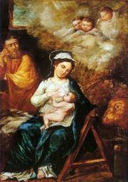 | Keywords: José Rodrigues Nunes - Sagrada Família.jpg Artwork Creator José Rodrigues Nunes Oil on canvas cm 39 27 8 Institution Museu de Arte da Bahia Salvador accession number object history credit line After Annibale Carracci Scan MAB/Safra catalogue PD-old-100 José Rodrigues Nunes Paintings in the Museu de Arte da Bahia 19th-century paintings of Holy Family 19th-century paintings from Brazil Paintings of Madonna lactans Baroque paintings from Brazil Breastfeeding wear | ||||