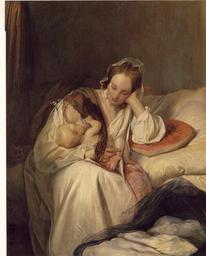 | Keywords: Josef Danhauser, Mutterliebe.jpg Artwork Die Gattin des Künstlers oil on canvas cm 50 7 42 Belvedere Wien Österreichische Galerie 1839 Creator Josef Danhauser Breastfeeding in art Josef Danhauser Österreichische Galerie Belvedere PD-old-100 |