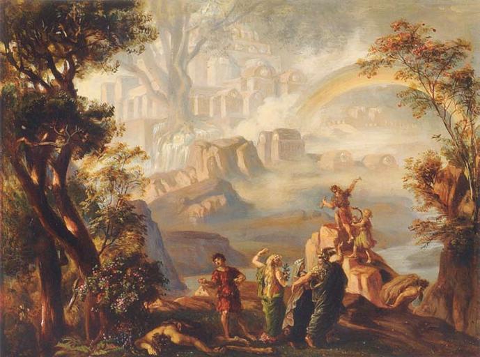 | Keywords: Josef Hoffmann - Closing scene of Das Rheingold final.jpg Artwork creator Josef Hoffmann Austrian painter Siegfried returns to the Hall of the Gibichungs in act 2 scene 1 of Götterdämmerung 1876 Oil on canvas cm 82 5 107 5 Richard-Wagner-Museum Bayreuth Germany cite journal Carnegy Patrick w Patrick Carnegy 15th Earl of Northesk 2010 July Designs on the Ring The Wagner Journal 4 2 41 55 London United Kingdom The Wagner Journal Barry Millington PDF 1755-0181 2011-06-23 http //www nottingham ac uk/is/gateway/ejournals/wagner_journal/2010_04_02_July_2010 pdf object history Hoffmann was offering to sell copies of the final versions of his paintings to ready buyers Carnegy pp 46 48 credit line Carnegy suggests this is the oil sketch; however Angerer's photograph does not match this the facial expression of the leftmost character the shading of the stone below his right arm and the position of the hand of the female on his left side Those match the cover of the journal which Carnegy says is the final instead As the photograph is of the oil sketch Carnegy might have mixed up his photographs accession number Carnegy 2010 p 44 <gallery> File Victor Angerer - Josef Hoffmann's Closing scene of Das Rheingold cropped jpg Angerer's photo of the sketch File Victor Angerer - Josef Hoffmann's Closing scene of Das Rheingold cropped bw jpg Black and white version of the photo File Victor Angerer - Josef Hoffmann's 03-14 Walhall jpg From a postcard </gallery> PD-old-100-1923 PD-1923 Das Rheingold Josef Hoffmann Austrian painter 1876 oil on canvas paintings 19th-century paintings location missing Rainbows in art |