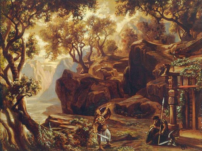 Keywords: Josef Hoffmann - Götterdämmerung Act II.jpg Artwork creator Josef Hoffmann Austrian painter Siegfried returns to the Hall of the Gibichungs in act 2 scene 1 of Götterdämmerung 1876 Oil sketch cm 20 8 26 Richard-Wagner-Museum Bayreuth Germany cite journal Carnegy Patrick w Patrick Carnegy 15th Earl of Northesk 2010 July Designs on the Ring The Wagner Journal 4 2 41 55 London United Kingdom The Wagner Journal Barry Millington PDF 1755-0181 2011-06-23 http //www nottingham ac uk/is/gateway/ejournals/wagner_journal/2010_04_02_July_2010 pdf object history Hoffmann has engaged Victor Angerer to take monochrome photographs of his oil sketches to publish and sell Carnegy 2010 pp 41 44 46 credit line accession number Carnegy 2010 p 50 <gallery> File Josef Hoffmann - Götterdämmerung Act II jpg Oil sketch File Victor Angerer - Josef Hoffman's Götterdämmerung Act II cropped jpg Hoffmann's photograph File Victor Angerer - Josef Hoffman's Götterdämmerung Act II cropped bw jpg Black and white version of the photo File Victor Angerer - Josef Hoffmann's 12-14 Vor der Halle der Gibichungen jpg From a postcard File Viktor Angerer - Josef Hoffmann's Götterdämmerung act 2 scene 1 jpg From a journal </gallery> PD-old-100-1923 PD-1923 Josef Hoffmann Austrian painter Götterdämmerung Siegfried 1876 paintings 19th-century paintings location missing |