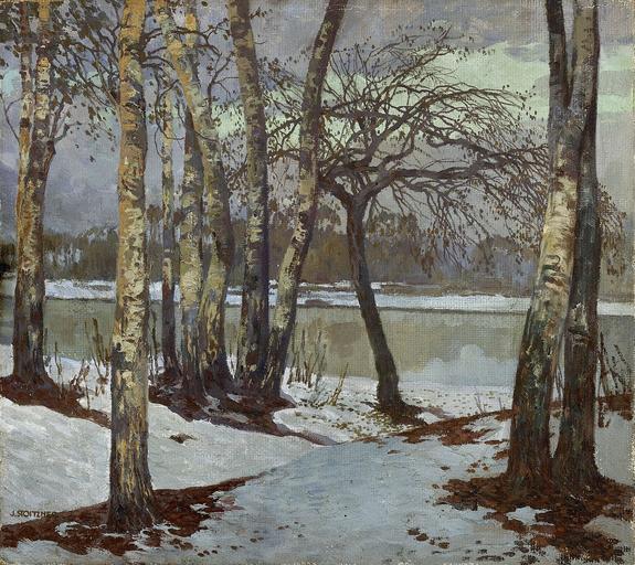 Keywords: Josef Stoitzner (1884–1951) Landschaften – Stillleben – Interieurs Josef Stoitzner Birken am Wasser im Winter um 192030 art-call Artistically