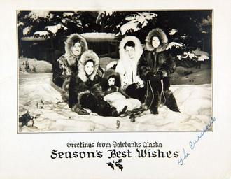 | Keywords: joseph e. e (joe) joe crosson special collection photo fairbanks alaska christmas card christmascard photo border Catalog #: 09_00694 Title: Joseph E. (Joe) Crosson Special Collection Photo Fairbanks Alaska Additional Information: The Crosson family. Joe and Lillian Crosson and three children all in full winter clothing seated the snow. Caption reads "" Greetings from Fairbanks Alaska. Seasons Best Wishes"", Joe Crosson was an experienced arctic pilot who became a national hero between the world wars flying mercy missions, including a dangerous search in Siberian winter for lost pilot, Carl Ben Eielson, and a winter flight in an open cockpit carrying serum to Barrow Alaska. He was the first pilot to land on a glacier. Tags: Joseph E. (Joe) Crosson Special Collection Photo Fairbanks Alaska Repository: San Diego Air and Space Museum Archive Catalog #: 09_00694 Title: Joseph E. (Joe) Crosson Special Collection Photo Fairbanks Alaska Additional Information: The Crosson family. Joe and Lillian Crosson and three children all in full winter clothing seated the snow. Caption reads "" Greetings from Fairbanks Alaska. Seasons Best Wishes"", Joe Crosson was an experienced arctic pilot who became a national hero between the world wars flying mercy missions, including a dangerous search in Siberian winter for lost pilot, Carl Ben Eielson, and a winter flight in an open cockpit carrying serum to Barrow Alaska. He was the first pilot to land on a glacier. Tags: Joseph E. (Joe) Crosson Special Collection Photo Fairbanks Alaska Repository: San Diego Air and Space Museum Archive |