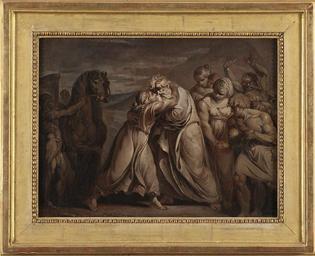 | Keywords: Joseph meets his father Jacob in the desert (Jean-Antoine Julien de Parme) - Nationalmuseum - 132587.tif Jean-Antoine Julien de Parme en Joseph meets his father Jacob in the desert Julien de Parme was of Swiss origin but worked in Italy and France In this work he has used oil paint to try to emulate the plasticity of a sculptural relief The painting is a typical example of the deep impact that antique sculpture had on artists in the late 18th century This painting belonged to the Swedish sculptor Johan Tobias Sergel who lived in Rome in the 1770s at the same time as Julien de Parme Julien de Parme var av schweiziskt ursprung men verksam i Italien och Frankrike I det här verket har han med oljemålningen som medium försökt efterlikna plasticiteten i en skulpturrelief Målningen är ett tydligt exempel på den antika skulpturkonstens stora betydelse för konstnärerna under slutet av 1700-talet Målningen har tillhört den svenske skulptören Johan Tobias Sergel som på 1770-talet vistades i Rom samtidigt som Julien de Parme header Julien de Parme was of Swiss origin but worked in Italy and France In this work he has used oil paint to try to emulate the plasticity of a sculptural relief The painting is a typical example of the deep impact that antique sculpture had on artists in the late 18th century This painting belonged to the Swedish sculptor Johan Tobias Sergel who lived in Rome in the 1770s at the same time as Julien de Parme Julien de Parme var av schweiziskt ursprung men verksam i Italien och Frankrike I det här verket har han med oljemålningen som medium försökt efterlikna plasticiteten i en skulpturrelief Målningen är ett tydligt exempel på den antika skulpturkonstens stora betydelse för konstnärerna under slutet av 1700-talet Målningen har tillhört den svenske skulptören Johan Tobias Sergel som på 1770-talet vistades i Rom samtidigt som Julien de Parme date Oil on canvas Olja på duk Size cm 40 3 20 4 Framed Size cm 51 40 3 Institution Nationalmuseum Stockholm Påskrift Herr Särgell i rödkrita a tergo på ramen Påskrift Särgell i blyerts a tergo på ramen Påklistrad lapp B 6 samt fragment av en ytterligare papperslapp med påskrift oläsl accession number 132587 NM 7073 place of creation Per-Åke Persson / Nationalmuseum Nationalmuseum Stockholm cooperation project Licensed-PD-Art PD-old-auto PD-Nationalmuseum_Stockholm 1799 Media contributed by Nationalmuseum Stockholm 2016-10 Paintings in the Nationalmuseum Stockholm Julien de Parme |