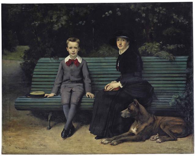 | Keywords: Joseph Paul Mesle Madame Memessiere et son fils.jpg Madame Memessiére et son fils Mrs Memessiére and her son Signed 'JP Mesle' dated ' 83' oil on canvas 225 x 185 cm Christie's online 5526376 4023 99 1883 Joseph Paul Meslé 1855-1929 PD-old Joseph Paul Meslé 1883 paintings Mothers and children in art Benches in art Paintings of women sitting on outdoor benches | ||||