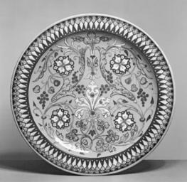 | Keywords: Joseph-Théodore Deck - Plate in "Turkish" Style - Walters 481912.jpg Deck was France's most innovative and influential ceramist during the 19th century A native of Alsace on the German border he came to Paris in 1851 and began working for a stove-maker By 1858 he had established his own kiln and workshop which became famous for earthenware brightly glazed in various exotic and historical styles ca 1860 earthenware with enamel decoration cm 50 50 accession number 48 1912 17919 William T Walters Baltimore date and mode of acquisition unknown Henry Walters city Baltimore Walters Art Museum Henry Walters from 5 West Mt Vernon Place Acquired by William T Walters Botanical Delights Floral Motifs in 19th-Century Art Strathmore Hall Art Center North Bethesda; Academy of the Arts Easton Easton; Government House Annapolis 1998-1999 A Magnificent Age Masterpieces from the Walters Art Museum Baltimore The Nelson-Atkins Museum of Art Kansas City; Mint Museum of Art Charlotte; The Walters Art Museum Baltimore 2002-2004 place of origin Paris France Walters Art Museum license Théodore Deck Art of France in the Walters Art Museum Earthenware Enamel Ceramic plates Enameled terracotta |