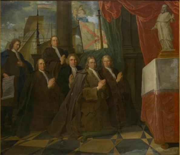 View Original: | Joseph_van_den_Kerckhove_-_Six_members_of_the_Bruges_Guild_of_Seamen_before_their_Patron_Saint_Clement.jpg (742x640) | |||