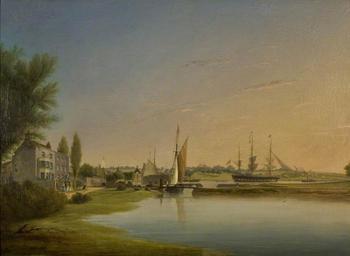 | Keywords: Joseph Walter - Sea Mills, Bristol.jpg Joseph Walter Joseph Walter 1783 “1856 Sea Mills is about halfway between Bristol and the mouth of the Avon The River Trym joins the Avon here and it was once the site of a Roman port and an unsuccessful eighteenth-century dock 1844 oil canvas cm 66 91 4 Institution Bristol City Museum and Art Gallery object history gift from James Fuller Eberle 1921 credit line accession number K2410 http //www bbc co uk/arts/yourpaintings/paintings/sea-mills-bristol-189222 BBC Your Paintings PD-Art-100 Joseph Walter Bristol City Museum and Art Gallery River Avon Bristol 19th-century sailing ships in paintings Images from BBC Your Paintings 1844 oil on canvas paintings |