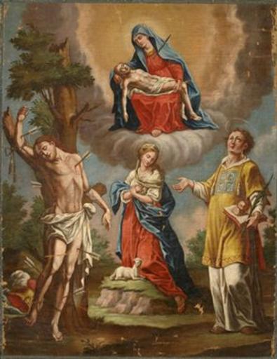 Keywords: Josip Egartner - Pietà s Sv. Boštjanom, Sv. Nežo in Sv. Štefanom.jpg probably century 18 oil canvas cm 64 50 Institution National Museum of Slovenia http //www nms si/index php option com_content view category layout blog id 81 Itemid 27 lang en Zbirka slik Narodnega muzeja Slovenije PD-old-100 Josip Egartner 18th-century paintings in the National Museum of Slovenia 18th-century oil on canvas paintings in Slovenia 18th-century religious paintings in Slovenia Paintings of the Pietà in Slovenia Paintings of Saint Sebastian in Slovenia Paintings of Saint Agnes of Rome in Slovenia Paintings of Saint Stephen in Slovenia 18th-century paintings of the Pietà |