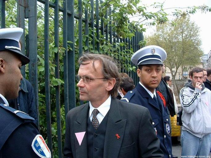 Keywords: Journée Déportation Paris 2005 1.jpg fr 24 avril 2005 Journée nationale du souvenir de la déportation A Paris dans l'après-midi les associations LGBT ont participé aux cérémonies du Mémorial du martyr juif Le Mémorial de la Déportation Homosexuelle représenté de façon symbolique était convié parmi les associations représentant les déportés conformément aux instructions du Ministre délégué aux anciens combattants Cependant deux cérémonies et deux dépôts de gerbe distincts ont bien été organisés sur l'Ile de la Cité La délégation homosexuelle a dû attendre le départ des officiels pour pouvoir se recueillir Sur cette photo l'accès à la cérémonie officielle est interdit à la délégation homosexuelle ici représentée par Jean Le Bitoux Les militants LGBT devront attendre le départ des invités de la République pour pouvoir honorer à leur tour la mémoire des homosexuels morts en déportation own Franck D Zanni 2005-04 Demonstrations and protests in Paris LGBT journalists Jean Le Bitoux |