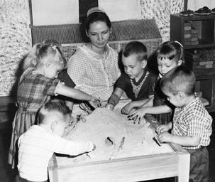 | Keywords: kansas city kansascity preschool children mennonite board of missions mennoniteboardofmissions mennonite sandbox sand joyce hathaway missouri blackandwhite people monochrome black and white Joyce Hathaway, is supervisor for this preschool group. Citation: Mennonite Board of Missions Photographs, 1900-1971. IV-10-007.2. Mennonite Church USA Archives - Goshen. Goshen, Indiana. Joyce Hathaway, is supervisor for this preschool group. Citation: Mennonite Board of Missions Photographs, 1900-1971. IV-10-007.2. Mennonite Church USA Archives - Goshen. Goshen, Indiana. |