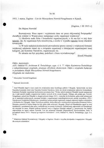 | Keywords: Józef Piłsudski - List do Mieczysława Norwid-Neugebauera - 701-001-100-063.jpg Piłsudski Institute document pl List do Mieczysława Norwid-Neugebauera 1915-03-01 pl Sprawy organizacyjne pl Józef Piłsudski - listy; Legiony pl Letter Jaworowski Rajmund Kęty <br/> Zagórze 701/1/100/63 701 180/2996 3547 1 PD-old-auto-unpublished 1935 yes Collections of Józef Piłsudski Institute of America from 1915 Józef Piłsudski in 1915 Letters by Józef Piłsudski | ||||