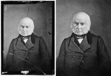 | Keywords: JQAdams-PhotoRestore.jpg Side by side images of John Q Adams illustrating Photo restoration Original Library of Congress http //hdl loc gov/loc pnp/cwpbh 02619 <br />Restored File John_Q _Adams-edit jpg 2009-08-04 AJCham PD-old AJCham LOC-image cwpbh 02619 Black and white photographic portraits of men Adams John Quincy Photographs of John Quincy Adams Restoration of photographs Before and after images of restorations | ||||