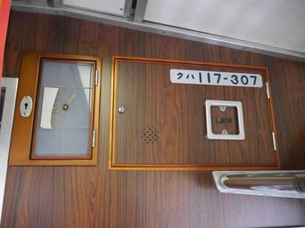| Keywords: JR West KUHA 117-306 driving trailer plates.JPG ja JRè¥¿æ—¥æ ¬ã‚¯ãƒ117-306ã®è»Šå·æ ¿ã¨é žå¸¸ç¯ã ‚ ã‚¢ãƒ«ãƒŸã®æž ãŒé‡‘色ã«å‡¦ç†ã•れã¦ã„ã‚‹ã ‚ en Registration number plate and emergency lamp on JR West KUHA 117-306 driving trailer Aluminium frames on small doors are coloured with gold which indicates the train was very special when it was built 2016-01-17 11 24 17 own Hahifuheho other versions cc-zero Interiors of JNR 117 JR West Train interiors of Shinkansen W7 | ||||