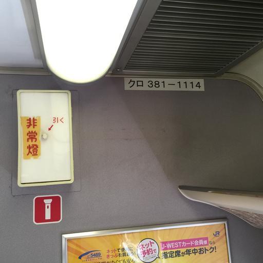 | Keywords: JR West Tsc 381-1114 plates.JPG  ja JR西日 クロ381-1114の番号 (テプラ?) en Car registration plate on JR West Tsc 381-1114 2015-07-20 14 16 07 own Hahifuheho other versions 35 261077777778 135 398925 heading 11 015212981744423 cc-zero JNR 381 JR West Uploaded with UploadWizard |