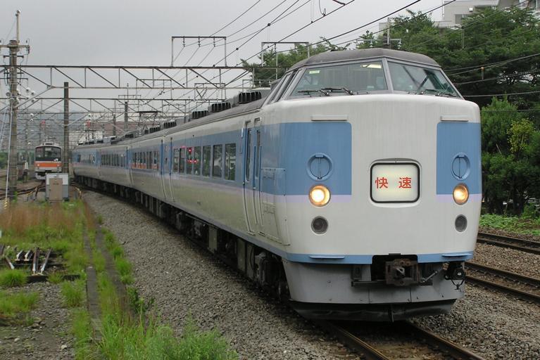 Keywords: JRE189MusashinoAzusa-color.JPG ja 豊田車両センター189系の代走 走る際は事前に告知をされていた self-photographed basser 2007-07-11 Cc-zero Chūō Main Line Tōhoku Main Line JNR 189 JR East Musashino train