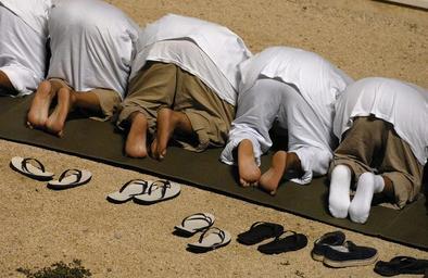 | Keywords: JTF Guantanamo Detainees Kneel As They Observe Morning Prayer DVIDS225364.jpg en A group of detainees at Joint Task Force Guantanamo bow and touch the forehead to the ground as they observe morning prayer before sunrise inside Camp Delta Oct 28 Detainees at the JTF are afforded the opportunity to pray five times each day and are provided prayer rugs and copies of the Quran 2009-10-28 Petty Officer 1st Class Marcos Hernandez https //www dvidshub net/image/225364 091028-N-+++++-077 2009-11-19 18 26 GUANTANAMO BAY CU PD-USGov-Military-Navy Joint Task Force Guantanamo Guantanamo Bay Images from DoD uploaded by Fæ Kneeling in prayer |
