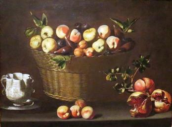| Keywords: Juan de Zurbarán Bodegón Masaveu.jpg Artwork Creator Juan de Zurbarán La ficha de la colección define la pieza de cerámica de la izquierda como 'bernegal' de porcelana Pero parece una alcarraza de la tradicional loza de Triana al uso en la pintura barroca sevillana de la época Ver Zurbarán padre Velázquez y Murillo por ejemplo circa 1644 1649 Oil on canvas Fundación Cristina Masaveu accession number object history credit line http //www lacomarcadepuertollano com/diario/noticia/2015_06_09/08 Exposición Zurbarán una nueva mirada http //www fundacioncristinamasaveu com/colecciones php id_actividad 158 Fundación Cristina Masaveu PD-old-100-1923 Juan de Zurbarán 17th-century still-life paintings of fruit baskets Paintings of ceramics by Zurbarán Still-life paintings with apples |