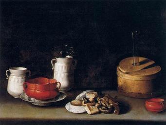 | Keywords: Juan van der Hamen - Still-Life with Crockery and Cakes - WGA11197.jpg Juan van der Hamen y León - Bodegón con loza y dulces jpg ca 1627 Oil on canvas size cm 77 100 Institution Museo Thyssen-Bornemisza object history credit line accession number WGA link 11197 http //www wga hu/art/h/hamen/stillif6 jpg http //www wga hu/html/h/hamen/stillif6 html PD-old-100 painting still-life Spanish 1601-1650 Still life paintings by Juan van der Hamen Paintings in the Thyssen-Bornemisza Museum 17th-century still life paintings in Spain Baroque still life paintings in Madrid 1620s still life paintings Baroque paintings in Madrid WGA form painting WGA type still-life WGA School Spanish WGA time period 1601-1650 17th-century oil on canvas paintings in Spain 1620s paintings in Spain Oil still life paintings 17th-century interiors and homewares in painting Pottery in Spanish painting |