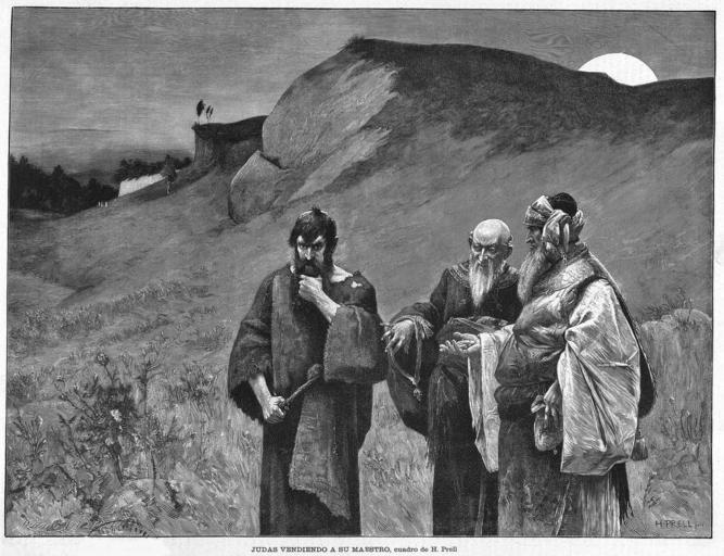 | Keywords: Judas vendiendo a su maestro, de Hermann Prell.jpg Hermann Prell recogida en la revista española La Ilustración Artística before 1888 1888 3 26 VII Hermann Prell 1854-1922 PD-Scan PD-old-auto-1923 1922 Hermann Prell La Ilustración Artística 1888 Paintings of Judas Iscariot |