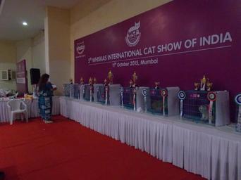 Keywords: Judge Ms. Irina Sadovnikova from Russia examining the show cats.JPG en Cat Show judge Ms Irina Sadovnikova from Russia examining the cats in their cages own Rudolph A furtado Sunday 11-10-2015 Mumbai cat shows Cc-zero