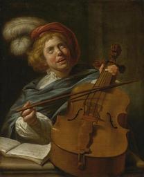 | Keywords: Judith Leyster - Cello player.jpg and workshop oil canvas cm 80 2 68 5 accession number object history credit line exhibition history http //www arcadja com/auctions/de/private/leyster_judith/kunstwerken/36229/0/ Sotheby's New York 26 Jan 2012 N08825 lot 186 via ARCADJA auction results PD-old-100 Judith Leyster Portrait paintings of men Paintings of men playing musical instruments indoors Serenades in art | ||||