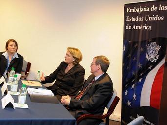 | Keywords: judith mc hale judithmchale usembassy montevideo usembassymontevideo uruguay alianza science corner sciencecorner ingenio latu public diplomacy publicdiplomacy La Subsecretaria Judith McHale participó en un evento en el que conoció a 19 fans de la página de Facebook de la embajada en Uruguay. La Subsecretaria Adjunta de Estado para Asuntos Públicos y Diplomacia Pública, Judith McHale, realizó una visita de dos días en Uruguay. McHale realizó un Tour guidado por Colonia del Sacramento y luego arribó a Montevideo. Su agenda, cargada de actividades, incluyó una reunión con las mujeres emprendedoras uruguayas que participaron el pasado año en la Conferencia Caminos hacia la Prosperidad, una reunión con los Fans de la página de Facebook de la embajada de EEUU en Uruguay, una visita a la Alianza Cultural Uruguay-Estados Unidos, una visita a Ingenio, la incubadora de empresas innovadoras ubicada en el LATU, participación en el Consejo de las Américas, entrevista personal con el Presidente Mujica y el Ministro de Relaciones Exteriores Luis Almagro y finalmente un Tour Guiado por el Teatro Solís. El embajador de Estados Unidos en Uruguay, David Nelson, acompañó en todo momento a la Subsecretaria y a su delegación. [US Embassy Photo by Pablo Castro] La Subsecretaria Judith McHale participó en un evento en el que conoció a 19 fans de la página de Facebook de la embajada en Uruguay. La Subsecretaria Adjunta de Estado para Asuntos Públicos y Diplomacia Pública, Judith McHale, realizó una visita de dos días en Uruguay. McHale realizó un Tour guidado por Colonia del Sacramento y luego arribó a Montevideo. Su agenda, cargada de actividades, incluyó una reunión con las mujeres emprendedoras uruguayas que participaron el pasado año en la Conferencia Caminos hacia la Prosperidad, una reunión con los Fans de la página de Facebook de la embajada de EEUU en Uruguay, una visita a la Alianza Cultural Uruguay-Estados Unidos, una visita a Ingenio, la incubadora de empresas innovadoras ubicada en el LATU, participación en el Consejo de las Américas, entrevista personal con el Presidente Mujica y el Ministro de Relaciones Exteriores Luis Almagro y finalmente un Tour Guiado por el Teatro Solís. El embajador de Estados Unidos en Uruguay, David Nelson, acompañó en todo momento a la Subsecretaria y a su delegación. [US Embassy Photo by Pablo Castro] |