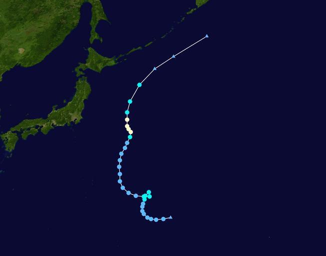 | Keywords: Judy 1960 track.png WPTC track map Supportstorm Typhoon Judy Typhoon Judy 1960 1960 Pacific typhoon season 1960-09-23 1960-10-02 from IBTrACS 1960 Pacific typhoon season track maps /track --id 32 --name JUDY --year 1960 --format hurdat2 --input WPAC HURDAT 2 WP321960 JUDY 35 19600923 1800 LO 22 0N 153 0E 20 1010 -999 -999 -999 -999 -999 -999 -999 -999 -999 -999 -999 -999 19600924 0000 TD 21 8N 152 0E 30 1010 -999 -999 -999 -999 -999 -999 -999 -999 -999 -999 -999 -999 19600924 0600 TD 21 7N 151 0E 30 1008 -999 -999 -999 -999 -999 -999 -999 -999 -999 -999 -999 -999 19600924 1200 TD 21 8N 150 3E 30 1008 -999 -999 -999 -999 -999 -999 -999 -999 -999 -999 -999 -999 19600924 1800 TD 22 0N 149 8E 30 1006 -999 -999 -999 -999 -999 -999 -999 -999 -999 -999 -999 -999 19600925 0000 TD 22 5N 149 3E 30 1006 -999 -999 -999 -999 -999 -999 -999 -999 -999 -999 -999 -999 19600925 0600 TD 22 9N 149 1E 30 1004 -999 -999 -999 -999 -999 -999 -999 -999 -999 -999 -999 -999 19600925 1200 TD 23 5N 149 1E 30 1003 -999 -999 -999 -999 -999 -999 -999 -999 -999 -999 -999 -999 19600925 1800 TD 23 9N 149 2E 30 1002 -999 -999 -999 -999 -999 -999 -999 -999 -999 -999 -999 -999 19600926 0000 TS 24 5N 149 4E 40 1000 -999 -999 -999 -999 -999 -999 -999 -999 -999 -999 -999 -999 19600926 0600 TS 25 0N 149 5E 40 997 -999 -999 -999 -999 -999 -999 -999 -999 -999 -999 -999 -999 19600926 1200 TS 25 5N 150 0E 40 995 -999 -999 -999 -999 -999 -999 -999 -999 -999 -999 -999 -999 19600926 1800 TS 24 9N 150 1E 40 994 -999 -999 -999 -999 -999 -999 -999 -999 -999 -999 -999 -999 19600927 0000 TS 24 9N 149 3E 35 995 -999 -999 -999 -999 -999 -999 -999 -999 -999 -999 -999 -999 19600927 0600 TD 25 0N 148 2E 30 997 -999 -999 -999 -999 -999 -999 -999 -999 -999 -999 -999 -999 19600927 1200 TD 25 4N 147 2E 30 999 -999 -999 -999 -999 -999 -999 -999 -999 -999 -999 -999 -999 19600927 1800 TD 26 1N 146 4E 30 1001 -999 -999 -999 -999 -999 -999 -999 -999 -999 -999 -999 -999 19600928 0000 TD 27 0N 146 0E 30 1002 -999 -999 -999 -999 -999 -999 -999 -999 -999 -999 -999 -999 19600928 0600 TD 28 0N 146 0E 30 1003 -999 -999 -999 -999 -999 -999 -999 -999 -999 -999 -999 -999 19600928 1200 TD 29 0N 145 9E 30 1004 -999 -999 -999 -999 -999 -999 -999 -999 -999 -999 -999 -999 19600928 1800 TD 29 9N 146 0E 30 1005 -999 -999 -999 -999 -999 -999 -999 -999 -999 -999 -999 -999 19600929 0000 TD 30 8N 146 2E 30 1004 -999 -999 -999 -999 -999 -999 -999 -999 -999 -999 -999 -999 19600929 0600 TD 31 6N 146 7E 30 1004 -999 -999 -999 -999 -999 -999 -999 -999 -999 -999 -999 -999 19600929 1200 TD 32 3N 147 0E 30 1002 -999 -999 -999 -999 -999 -999 -999 -999 -999 -999 -999 -999 19600929 1800 TS 33 1N 147 4E 50 990 -999 -999 -999 -999 -999 -999 -999 -999 -999 -999 -999 -999 19600930 0000 TY 33 8N 147 5E 75 980 -999 -999 -999 -999 -999 -999 -999 -999 -999 -999 -999 -999 19600930 0600 TY 34 2N 147 2E 75 980 -999 -999 -999 -999 -999 -999 -999 -999 -999 -999 -999 -999 19600930 1200 TY 34 6N 147 0E 75 980 -999 -999 -999 -999 -999 -999 -999 -999 -999 -999 -999 -999 19600930 1800 TY 35 5N 147 0E 65 980 -999 -999 -999 -999 -999 -999 -999 -999 -999 -999 -999 -999 19601001 0000 TS 36 5N 147 0E 55 985 -999 -999 -999 -999 -999 -999 -999 -999 -999 -999 -999 -999 19601001 0600 TS 38 0N 147 4E 50 990 -999 -999 -999 -999 -999 -999 -999 -999 -999 -999 -999 -999 19601001 1200 TS 40 3N 148 7E 40 995 -999 -999 -999 -999 -999 -999 -999 -999 -999 -999 -999 -999 19601001 1800 EX 42 5N 150 8E 30 995 -999 -999 -999 -999 -999 -999 -999 -999 -999 -999 -999 -999 19601002 0000 EX 44 2N 153 4E 30 996 -999 -999 -999 -999 -999 -999 -999 -999 -999 -999 -999 -999 19601002 0600 EX 47 0N 158 0E 30 994 -999 -999 -999 -999 -999 -999 -999 -999 -999 -999 -999 -999 |