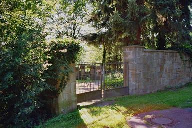 | Keywords: Juedischer Friedhof Ibbenbueren 01.jpg en Entrance gate of the Jewish cemetery in Ibbenbüren Kreis Steinfurt North Rhine-Westphalia Germany The cemetery is a listed cultural heritage monument de Eingangstor des jüdischen Friedhofs in Ibbenbüren Kreis Steinfurt Nordrhein-Westfalen Deutschland Das älteste Grab des Friedhofs ist von 1844 Die meisten Grabsteine tragen eine hebräische und deutsche Inschrift einige sind jedoch stark verwittert Alle Gräber sind nach Osten ausgerichtet Seit 1986 steht der von einer hohen Sandsteinmauer umgebene Bestattungsplatz komplett unter Denkmalschutz Ibbenbüren A 058 own J -H Janßen 2012-08-01 Jüdischer Friedhof Ibbenbüren 2012 in Ibbenbüren 20120801 Ibbenburen August 2012 in Germany 20120801 Ibbenburen Photographs taken on 2012-08-01 Ibbenburen Bilder von J -H Janßen Gates in Ibbenbüren Jewish cemetery gates in Germany Cc-zero |