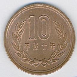 | Keywords: JuEnDamaEvergreenTreeWP.jpg 10 Yen coin of Japan Inscription 10 value of coin in yen 平成七年 The year Heisei 7 Design Evergreen tree I scanned this coin 2005-09-03 own assumed Fg2 See also Image JuEnDamaByodoinWP jpg Image JuEnDamaBothSidesWP jpg 10 yen coins |