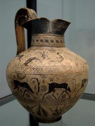 | Keywords: Jug griffins ibexes Staatliche Antikensammlungen 449.jpg Ostgriechische Kanne um 630 v Chr Schulterfries Löwengreif Mitte äsende Steinböcke Unten Blüten-Knospenkette Oberfläsche der Tons veredelt zur Elfenbeinweiss Eastern Greece jug ca 630 BC Top Griffins Center grazing ibexes Bottom bloom buds Jarre de Grèce de l'Est v 630 av J -C Frise supérieure griffons Frise centrale bouquetins en train de brouter Frise inférieure fleurs en bouton Museum Staatliche Antikensammlungen Room 1 object history credit line accession number Inv 449 User Bibi Saint-Pol own work 2007-02-09 other versions Griffins in ancient Greek pottery Ibexes in ancient Greek pottery Ancient Greek pottery oinochoes Greek Orientalizing pottery in the Staatliche Antikensammlungen Staatliche Antikensammlungen - Room 1 630s BC |