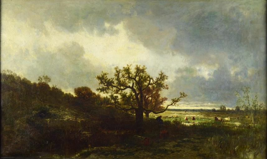 | Keywords: Jules Dupré - Paysage avec des arbres de chêne.jpg  Artwork creator Jules Dupré oil canvas cm 41 70 accession number object history credit line Dupré ~ lower left signature LangSwitch http //www papilio cz/cz/archiv php aukce a40 pol 16389 Aukční dům Zezula http //www papilio cz/de/archiv php aukce a40 pol 16389 Auktionshaus Zezula Brno http //www papilio cz/en/archiv php aukce a40 pol 16389 Auction house Zezula Brno A40 lot 132 PD-old-100-1923 1889 Jules Dupré Landscape paintings of France 19th-century landscape paintings Paintings of cattle Images from Zezula Auction House |