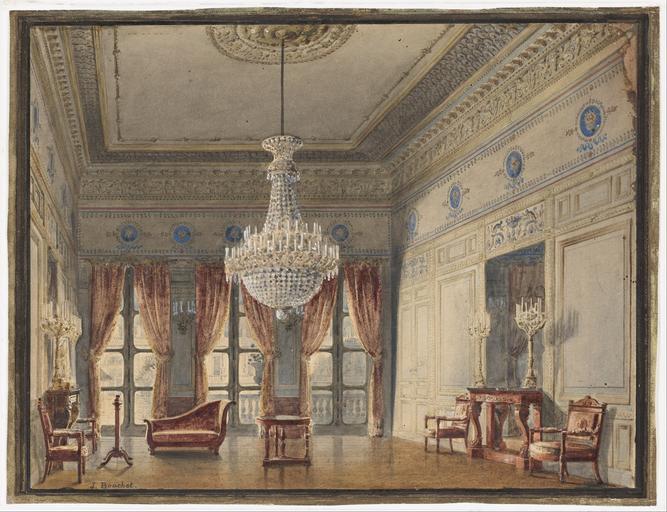 | Keywords: Jules Frédéric Bouchet - The Salon in the Montpensier Wing, Palais Royal - Google Art Project (6836611).jpg ~ 1831 1799 1860 Jules 6850341 Frédéric Bouchet 1799 - 1860 /collection/cooper-hewitt-national-design-museum/artwork/the-salon-in-the-montpensier-wing-palais-royal-jules-frederic-bouchet/6836611/ 229907 Jules Frédéric Bouchet /artist/jules-frederic-bouchet/12698243/ 12698243 /collection/cooper-hewitt-national-design-museum/ Cooper-Hewitt National Design Museum 3644669 http //www cooperhewitt org/ 3/12/2012 5 37 18 PM /collection/cooper-hewitt-national-design-museum/artwork/the-salon-in-the-montpensier-wing-palais-royal-jules-frederic-bouchet/6836611/ 1826 ca 1831 Brush and watercolor over graphite brush and white gouache on white wove paper Eugene V Thaw Collection; Galerie Jacques Fischer Paris 6836611 False 1836 3/25/2012 1 00 38 PM 2007-27-10 http //collection cooperhewitt org/view/objects/asitem/id/229907 Thaw Collection Drawing 1820 1840 ca 1831 False 1 3027989821883 Object the-salon-in-the-montpensier-wing-palais-royal-jules-frederic-bouchet The Salon in the Montpensier Wing Palais Royal s Charlotte Gere and Floramae McCarron-Cates House Proud From Amateur to Professional and from Grand to Comfortable in Gail S Davidson et al House Proud Nineteenth-century Watercolor Interiors from the Thaw Collection New York Cooper-Hewitt National Design Museum Smithsonian Institution 2008 32 fig 3; 84 pl 10 Gail S Davidson Masterworks House Proud Interiors from the Thaw Collection Veranda November-December 2008 132-133; 238 illus 132 Frame H x W x D 28 3 x 33 7 x 5 1 cm 11 1/8 x 13 1/4 x 2 in Sheet 18 2 x 24 4 cm 7 3/16 x 9 5/8 in New York NY Cooper-Hewitt National Design Museum Smithsonian Institution House Proud Nineteenth-century Watercolor Interiors from the Thaw Collection August 12 2008-January 25 2009 Brush and watercolor over graphite brush and white gouache on white wove paper White wove paper Eugene V Thaw Collection; Galerie Jacques Fischer Paris Lower left J Bouchet special url_id vgHSUEexjKPc2w PD-old-100-1923 1860 Google Art Project works by Jules Frédéric Bouchet Watercolors of building interiors in the Cooper “Hewitt Smithsonian Design Museum 1830s watercolor paintings Google Art Project works in Cooper-Hewitt Smithsonian Design Museum Historical images of Palais Royal 1830s interiors in art |