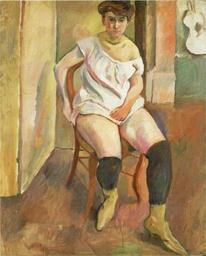 | Keywords: JulesPascin-1908-Woman Putting on Yellow Rubber Boots.png Artwork 黄色のゴム長 をはいた女 Woman Putting on Yellow Rubber Boots Creator Jules Pascin 1908 oil on canvas cm 72 5 59 5 ギィ・クローグ蔵 オスロ 1999年現 G Krohg Oslo as of 1999 パスキン展 愛とさすらいの旅路 図録 日新聞社 1999年 PD-old-70-1923 右下に署名 Pascin Other versions Jules Pascin PD-old-70-1923 |