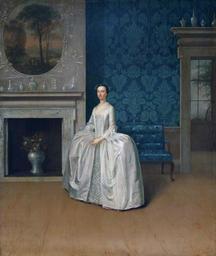 | Keywords: Juliana Penn (née Fermor) by Arthur Devis (1712-1787).jpg Artwork Creator Arthur Devis Lady Juliana Penn née Fermor wife of Thomas Penn made on the occasion of her marriage to Thomas Penn 1752 Oil on canvas cm 91 8 79 1 Institution Philadelphia Museum of Art Gallery 274 European Art 1500-1850 second floor http //www philamuseum org/collections/permanent/99954 html mulR 24026 Philadelphia Museum of Art other versions PD-old-100 DEFAULTSORT 1752; Juliana Penn Arthur Devis British paintings in the Philadelphia Museum of Art 1750s dresses 1752 oil on canvas paintings in the United States Portrait 1752 portrait paintings from Great Britain 18th-century oil portraits of standing women at full length 18th-century portrait paintings in interiors 18th-century portrait paintings in the United States 18th-century women of Great Britain Couches in portrait paintings Females with white dresses in art Fireplaces in art Panniers clothing in portrait paintings Portraits with paintings |