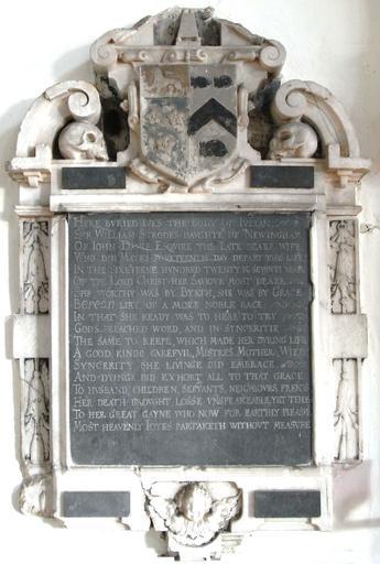 | Keywords: JulianaStrodeMonument SandfordChurch Devon.png Mural monument to Juliana Strode d 1627 wife of Sir John Davie 1st Baronet 1588 “1654 of Creedy in the parish of Sandford near Crediton Devon and daughter of Sir William Strode 1562-1637 MP of Newnham Plympton St Mary Devon North aisle of Sandford Church Devon Inscribed in verse as follows Here buried lyes the body of Julian <br> Sur William Strode's daughter of Newingham <br> Of John Davie Esquire the late deare wife <br> Who did Maye's fourteenth day depart this life <br> In the sixteene hundred twenty seventh yeare <br> Of the Lord Christ her saviour most deare <br> She worthy was by byrth she was by grace <br> Berean-like of a more noble race <br> In that she ready was to here to try <br> God's preached word and in synceritie <br> The same to keepe which made her during life <br> A good kinde carefull mistres mother wife <br> Syncerity she livinge did embrace <br> And dyinge did exhort all to that grace <br> To husband children servants neighbours frends <br> Her death brought losse unspeakable yet tends <br> To her great gayne who now for earthly pleasure <br> Most heavenly joyes partaketh without measure <br> Wall mounted church monuments in Devon Sandford Devon Strode arms Davie of Creedy arms |
