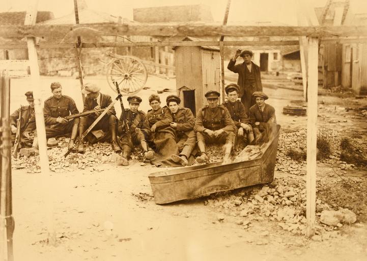 | Keywords: national army nationalarmy soldiers irish civil war irishcivilwar july 1922 1920s w.d. hogan wdhogan hogan collection hogancollection twenties south western front southwesternfront ireland civil war civilwar location identified locationidentified date established dateestablished ordnance barracks ordnancebarracks mulgrave road mulgraveroad limerick munster tin bath tinbath fire national library of ireland nationallibraryofireland monochrome National Army troops at the South Western Front during the Irish Civil War. We've discovered (mostly through all of your efforts here on Flickr) that some of our W.D. Hogan collection dates are not as secure as we thought, so thanks to sbreathnach for giving us a location for this one at the Ordnance Barracks, Mulgrave Street, Limerick and a date of Friday 21st or Saturday 22nd July 1922! Date: Friday 21 or Saturday, 22 July 1922 NLI Ref.: HOG123 National Army troops at the South Western Front during the Irish Civil War. We've discovered (mostly through all of your efforts here on Flickr) that some of our W.D. Hogan collection dates are not as secure as we thought, so thanks to sbreathnach for giving us a location for this one at the Ordnance Barracks, Mulgrave Street, Limerick and a date of Friday 21st or Saturday 22nd July 1922! Date: Friday 21 or Saturday, 22 July 1922 NLI Ref.: HOG123 |