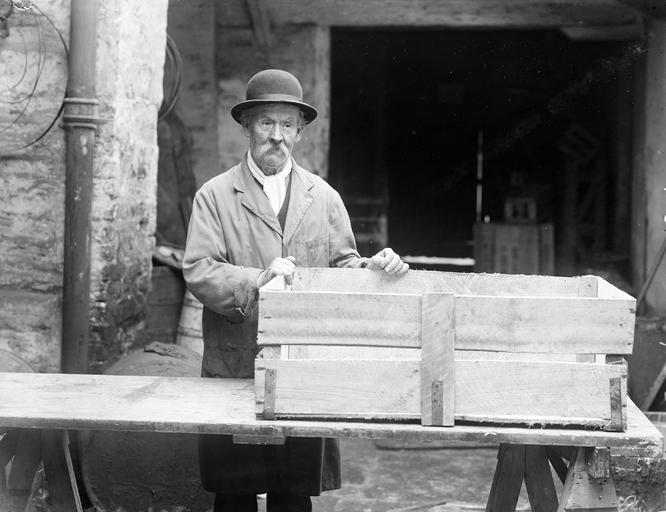 | Keywords: william hill williamhill 53 o'connell street, waterford 53oconnellstreetwaterford packing crates man standing working work 1931 1930s thirties older mustache moustache bowler hat crate poole collection poolecollection glass negative glassnegative a.h. poole ahpoole arthur henri poole arthurhenripoole national library of ireland nationallibraryofireland blackandwhite people monochrome black and white This marvellous man is either Mr William Hill of 53 O'Connell Street, Waterford, or was photographed while working at Hill's premises. Date: 3 July 1931 NLI Ref.: P_WP_3840 This marvellous man is either Mr William Hill of 53 O'Connell Street, Waterford, or was photographed while working at Hill's premises. Date: 3 July 1931 NLI Ref.: P_WP_3840 |