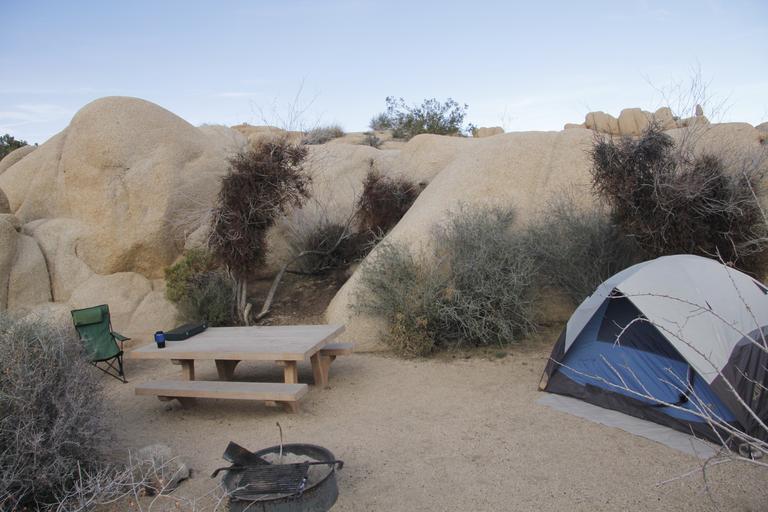 | Keywords: joshua tree national park joshuatreenationalpark joshua tree joshuatree national park nationalpark boulders rocks camping family jumbo rocks jumborocks campground picnic tent firepit outdoor Centrally located, Jumbo Rocks Campground offers great opportunities for scrambling around the boulders Joshua Tree National Park is known for. Skull Rock Nature Trail loops near the campground, leading visitors among the rock features and native plants of the area. There are 124 individual/family sites in this campground. All are first come, first served. Site 122 is wheelchair accessible. For more information about camping at Joshua Tree National Park, visit www.nps.gov/jotr/planyourvisit/camping.htm. NPS Photo. Centrally located, Jumbo Rocks Campground offers great opportunities for scrambling around the boulders Joshua Tree National Park is known for. Skull Rock Nature Trail loops near the campground, leading visitors among the rock features and native plants of the area. There are 124 individual/family sites in this campground. All are first come, first served. Site 122 is wheelchair accessible. For more information about camping at Joshua Tree National Park, visit www.nps.gov/jotr/planyourvisit/camping.htm. NPS Photo. |