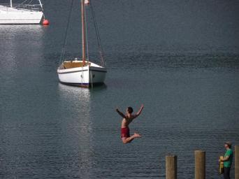 Keywords: jump ocean water red man jetty boat joy summer swim fun splash happy young leisure male