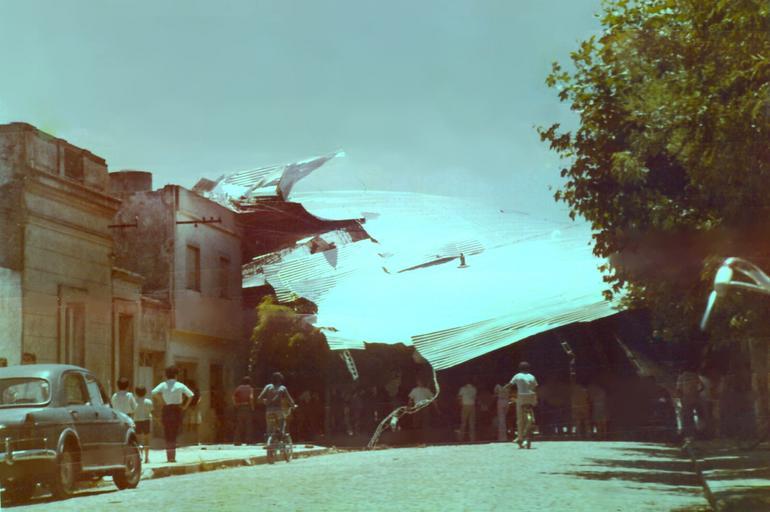 | Keywords: Junín Huracán 19740104.jpg es Techo del gimnasio del Club Jorge Newbery en junín Argentina volado por una tormenta el 4 de enero de 1974 y depositado sobre la calle Italia entre España y Newbery own Germanramos actully my father 1974-01-04 Cc-zero FoP-Argentina Tornado de 1974 en Junín Históricas Club Jorge Newbery Junín in the 1970s |