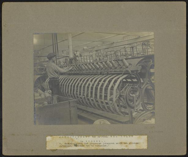 | Keywords: nationaal archief nationaal archief nationaalarchief man machine factory manmachinefactory factory machine sepia Beschrijving: Haspelmachine bij jutespinnerij en -weverij fa. Ter Horst te Rijssen. Het gesponnen jutegaren wordt tot strengen gehaspeld Datum: Circa 1919 Vervaardiger: J.D.Filarski Formaat: 17.5 x 23.5 cm Bestanddeelnummer: 2.24.03_2256_256-1277 Fotocollectie: Arbeidsinspectie Auteursrechten: Nationaal Archief Voor meer informatie over het Nationaal Archief: www.nationaalarchief.nl Voor meer foto's uit deze en andere collecties, bezoek onze Beeldbank: beeldbank.nationaalarchief.nl/ U kunt ons helpen onze kennis van de fotocollecties te verrijken door tags en commentaren toe te voegen. Herkent u mensen of locaties of heeft u een bijzonder verhaal te vertellen bij één van de foto’s, laat dan een reactie achter (als u ingelogd bent bij Flickr) of stuur een mailtje naar: flickrthecommons@nationaalarchief.nl! Beschrijving: Haspelmachine bij jutespinnerij en -weverij fa. Ter Horst te Rijssen. Het gesponnen jutegaren wordt tot strengen gehaspeld Datum: Circa 1919 Vervaardiger: J.D.Filarski Formaat: 17.5 x 23.5 cm Bestanddeelnummer: 2.24.03_2256_256-1277 Fotocollectie: Arbeidsinspectie Auteursrechten: Nationaal Archief Voor meer informatie over het Nationaal Archief: www.nationaalarchief.nl Voor meer foto's uit deze en andere collecties, bezoek onze Beeldbank: beeldbank.nationaalarchief.nl/ U kunt ons helpen onze kennis van de fotocollecties te verrijken door tags en commentaren toe te voegen. Herkent u mensen of locaties of heeft u een bijzonder verhaal te vertellen bij één van de foto’s, laat dan een reactie achter (als u ingelogd bent bij Flickr) of stuur een mailtje naar: flickrthecommons@nationaalarchief.nl! |