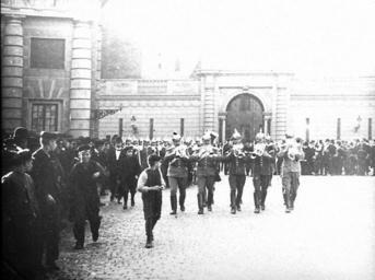 Keywords: K1 högvakt 1900.jpg sv K1 högvakt omkring 1910 own Gormel01 2009-05-02 Military history of Sweden Black and white photographs Livgardet till häst Royal Palace Stockholm - exterior